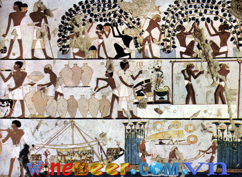Ở một số tiểu vùng nhỏ của Châu Á ở Anatolia và Georgia có một sáng kiến mới là họ đặt những trái nho trong các thùng chứa và những trái nho đó được nén ép bằng chính trọng lượng của chúng. Kết quả là thu được dịch nước nho, Chúng được lên men mà thức uống mới cũng được khám phá ra, tất nhiên niềm vui này không được kể cho một số người, cho đến khi dịch nước nho chuyển đổi thành dấm do ảnh hưởng của oxy và họ đã kể lại điền đó, những người làm rượu vang này cho rằng thượng đế cho họ dấm ăn. những nền văn minh Hy Lạp cổ đại đã chứng minh cho chúng ta thấy được lịch sử ra đời của rượu vang với những câu chuyện sinh động.