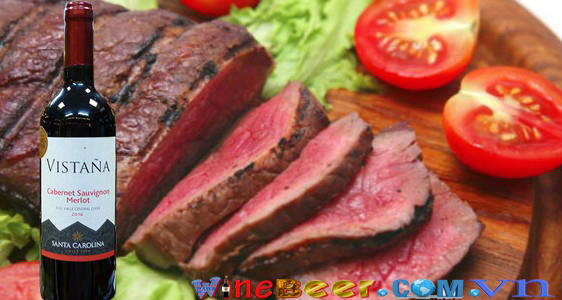 Thực phẩm kết hợp tốt với Vang Vistana Cabernet Sauvignon Merlot: Lý tưởng với các các loại thịt đỏ, Gợi ý phục vụ Vistana: Phục vụ tốt nhất ở 16 ᵒC.