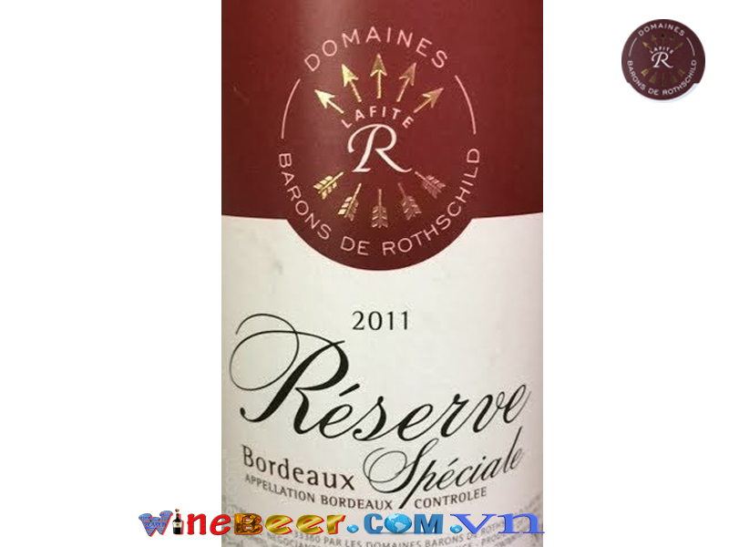 Rượu vang Pháp Barons de Rothschild Réserve Spéciale Bordeaux Rouge - rượu vang đỏ rất cân bằng và hài hòa, đầy hương vị tươi sáng của quả mâm xôi, nho đỏ và đen. Rượu vang được làm từ nho Cabernet Sauvignon (70%) và Merlot (30%), trồng trong vườn nho tốt nhất của Bordeaux ở Entre-Deux-Mers và Cotes de Bordeaux. Khối lượng rượu vang sản xuất hàng năm là 50 000 chai.