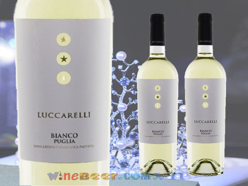 Vang Ý Luccarelli Blanco có màu vàng nhạt, vị cân bằng, hương thơm mạnh của mùi trái cây,