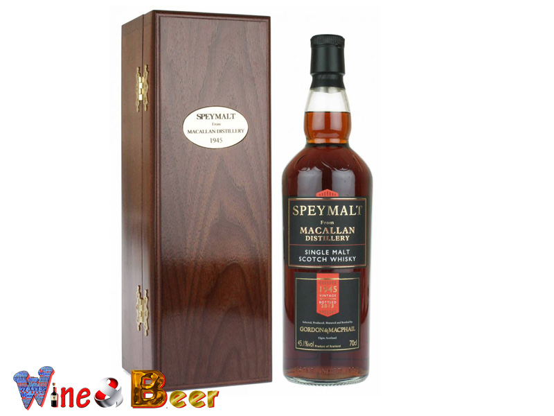 Macallan Speymalt 1945 được chưng cất vào ngày 12 Tháng Tư năm 1945 và đóng chai trên ngày 15 tháng 8 năm 2013.