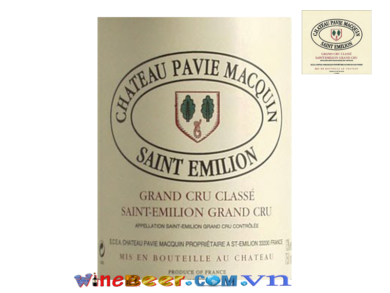 Rượu vang Pháp Chateau Pavie Macquin Giống nho: Cabernet Sauvignon , Merlot Loại vang: Đỏ Niên vụ: 2012 Vùng : Saint - Emilion Quốc gia: Pháp Dung tích: 750ml Nồng độ: 14.5%         Để tìm hiểu thêm về các loại vang Pháp, Rượu vang Pháp vùng Bordeaux, hoặc các loại rượu vang Ý, vang Chile ... mời các bạn tham khảo tại:   ...