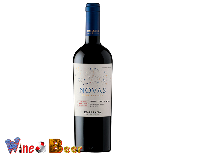 Vang Emiliana Novas Cabernet Sauvignon có màu đỏ sáng, hương phức tạp trái dâu tây, anh đào, gỗ tuyết tùng, thoảng mùi bạc hà. Vị mạnh, tannin chín và chua dai dẳng. Lý tưởng với thịt bò, xúc xích, mỳ ống, phô mai.