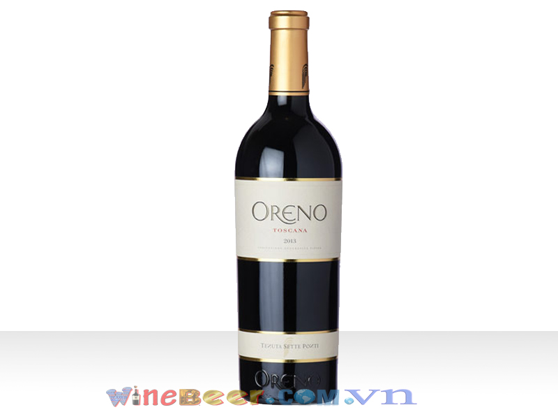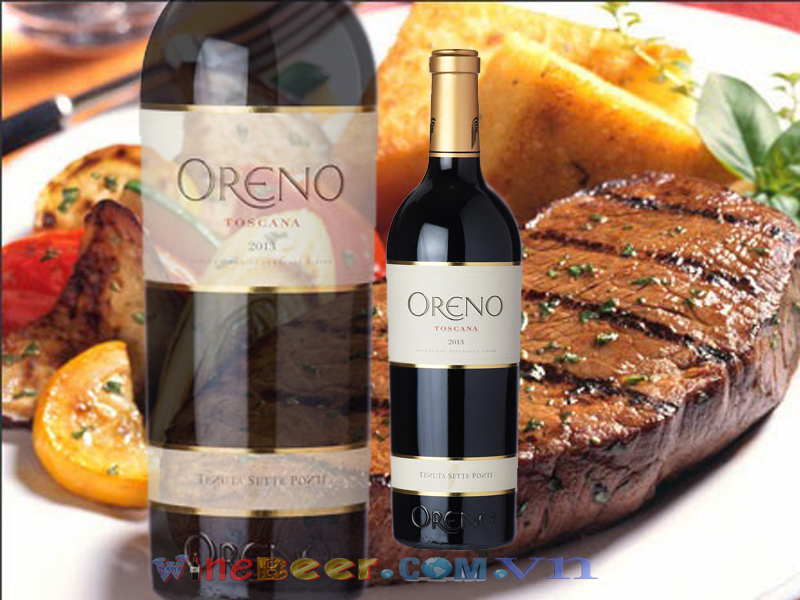 Vang Ý Oreno có màu đỏ ruby pha ánh tím, rượu có hương hoa quả chín pha lẫn vị socola, được tạo ra bởi 3 giống nho nổi tiếng Oreno có cấu trúc mạnh mẽ và phong phú tạo cảm giác thú vị khi thưởng thức